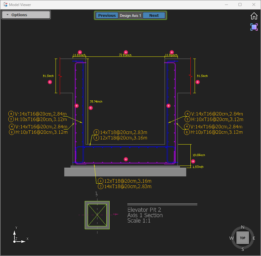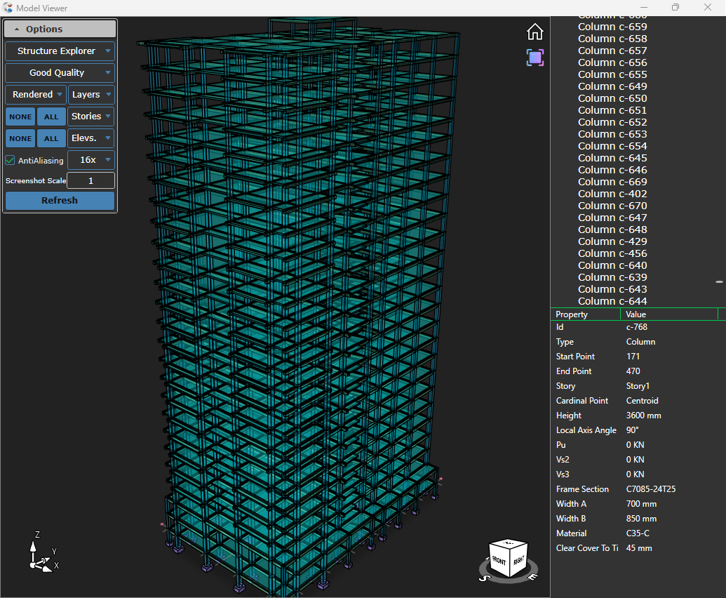 - اضافه شدن مقطع عرضی به برنامه در حالت Multi Section و نمایش دقیق میلگردهای طولی مطابق با آنچه در نمای سهبعدی وجود دارد.