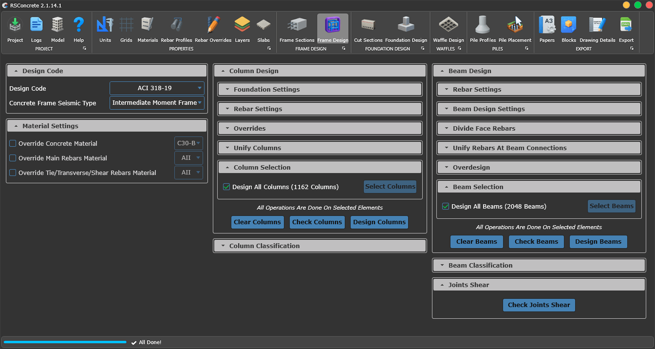- محاسبه سطح مقطع بتن به شکل دقیق در هر نوار طراحی برای انواع دالها (کاهش حدود 50 درصد سطح آرماتور در سقفهای وافل به دلیل کاهش سطح مقطع بتن نسبت به نسخه قبلی که همواره سطح بتن به صورت دال توپر در نظرگرفته میشد(
