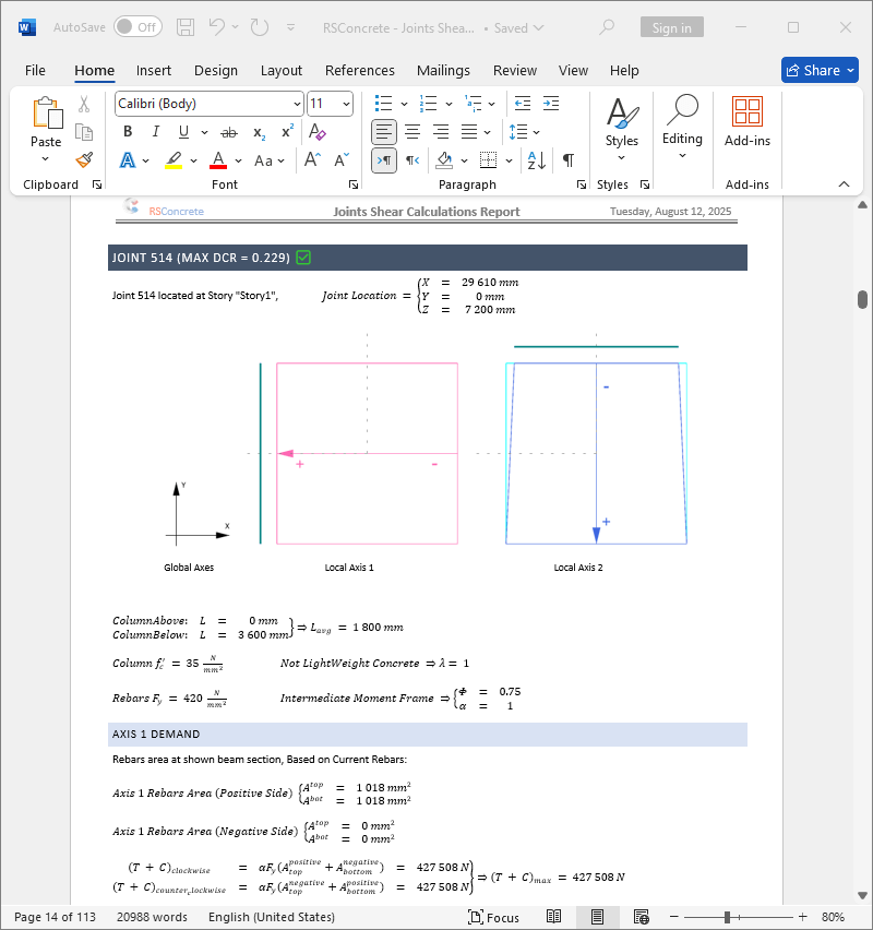- افزودن سطح بتن هر نوار طراحی به اطلاعات خروجی در دفترچه محاسبات