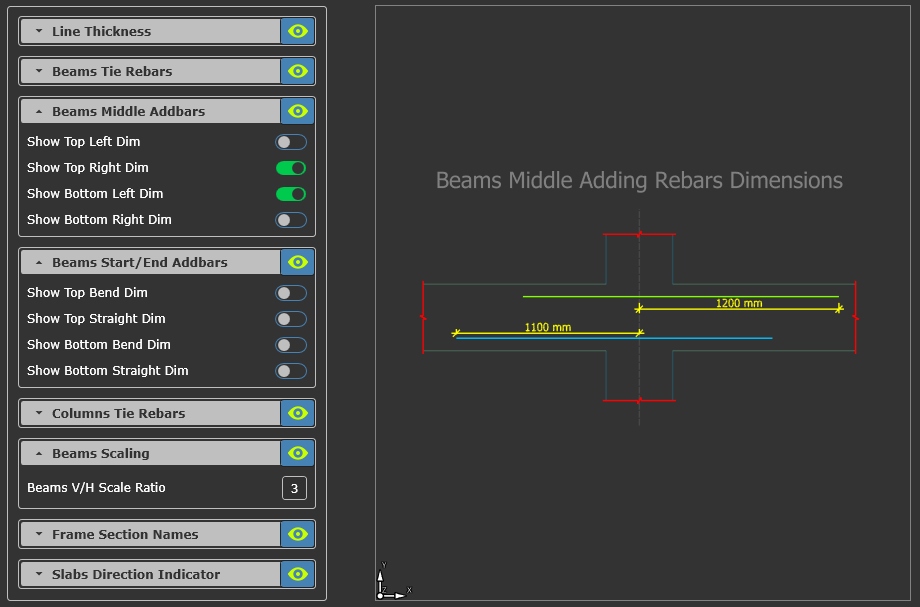 - امکان تعیین آرماتورهای طولی تیر بر اساس حداقل آیین نامه و یا تعداد مورد نظر کاربر